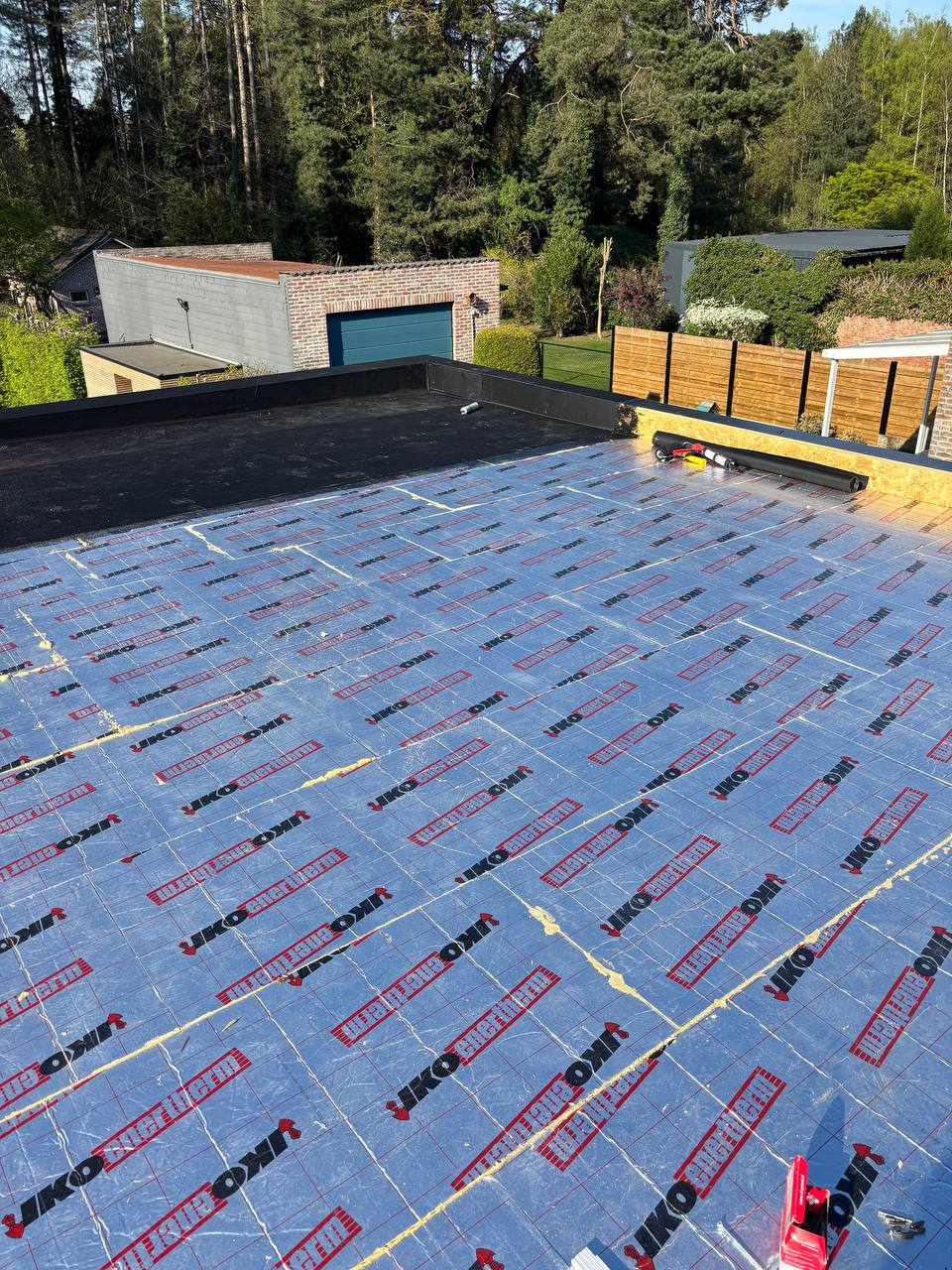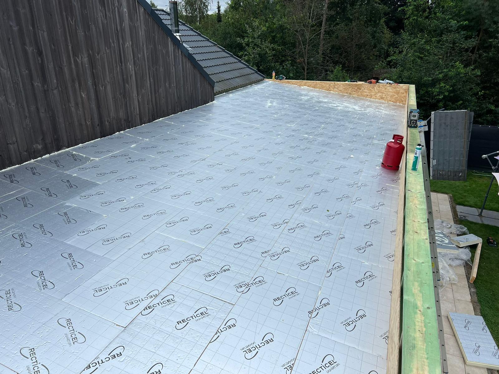 Met snelheid, efficiëntie en vakmanschap brengen we hoogwaardige isolatiematerialen aan op de dragende structuren van het platte dak en zo zorgen we voor het perfecte warme dak.